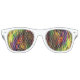 Psychedelic colours on each perforated 'lens' on black designer party glasses.