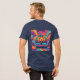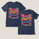 This is a Psychedelic Jack O Lantern Sofa T-Shirt. The digital art features a cute jack o lantern sofa. The jack o lantern seems to be sitting on the sofa yet a part of the sofa. The picture also has rainbow arcs, two pumpkins and pretty pink clouds. The t-shirt is a new triblend navy blue t-shirt.