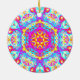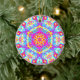 Psychedelic Mandala Flower Blue Pink and Yellow Ceramic Ornament
