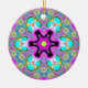 Psychedelic Mandala Flower Blue Pink and Yellow Ceramic Ornament