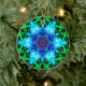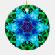 Psychedelic Mandala Flower Blue Purple and Green Ceramic Ornament