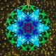 This psychedelic kaleidoscope flower design features blue, purple, and green. Vibrant trippy visuals for the modern hippie or anyone who loves bright funky colours!
