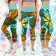 Psychedelic Mandala Flower Teal and Yellow Capri Leggings