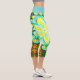 Psychedelic Mandala Flower Teal and Yellow Capri Leggings