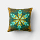 Psychedelic Mandala Flower Teal and Yellow Cushion