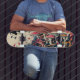 Psychedelic Mushroom Forest with Guitar Skateboard