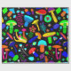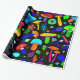 psychedelic mushrooms retro floral vibrant wrapping paper