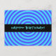Psychedelic Neon Blue Circles Happy Birthday Postcard