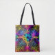 Psychedelic Neon Lines with Flower Art Tote Bag