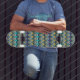 Get mesmerised by the Psychedelic Orb Grid skateboard. Featuring rows of trippy, eye-like spheres in cool blues, greens, purples, and golden gradients, this design radiates retro-futuristic energy. Ideal for skaters who love vibrant colour, symmetry, and optical illusion effects.