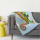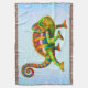 Original fine artwork in psychedelic colours of a male Panther Chameleon by artist Carolyn McFann printed on a stylish throw blanket for all who love chameleons and other lizards.