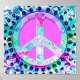 Peace sign with dots and swirls in hot neon shades of pink, blue, green and yellow, by Justin Allen. Cool cute colourful beautiful artistic hippie trippy psychedelic vintage retro sixties style spiritual inspirational abstract art.