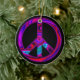 Colourful digital artwork on a peace symbol against black background. Add a photo to the back for a personalised Christmas keepsake ornament!