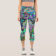 Psychedelic Purple and Lime Green Garden Flowers Capri Leggings