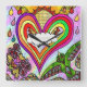 Psychedelic Rainbow Heart Art Print Square Wall Clock