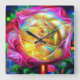 Psychedelic Rainbow Rose Square Wall Clock