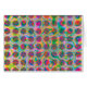 Greeting Cards featuring a bright and colourful spots / polka dots pattern in psychedelic rainbow colours.