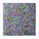 This product is made from an eye-catching, multicolored textured mosaic square tiles pattern in a vivid blue with regions of red, yellow, neon green, and other rainbow colours, and swirls of "purple haze" randomly dispersed throughout this unique psychedelic design.