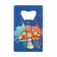Psychedelic Boho Retro Party Amanita Mushroom Credit Card Bottle Opener features a colourful abstract cartoon-like rendition of the Fly Muscaria mushroom which is bright red with white dots. This cool mushroom is surrounded by colourful psychedelic splatter in shades of purple, green, orange, yellow and pink. We have it on a bright blue background but you can personalise this mushroom design by changing or adding your own designs and text. See more cool gifts in our store at zazzle.com/VicesAndVerses.