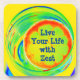 Live your life with Zest with a slice of psychedelic citrus on bright orange, green, blue and yellow coasters. A slice of lemon, lime or orange afloat in a swirling mixed drink, this multicolored tropical coaster set of 6 has a retro pop feel that's fun and colourful. Customise with Name, Initials and/or text.