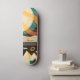 A psychedelic retro coloured space scene with a rocket flying in space. A vibrant cosmic landscape that captures your imagination!