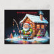 psychedelic Santa holding fishing pole christmas Holiday Postcard