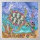 Psychedelic Sea Turtle Seahorse Art Ceramic Tile Poster