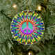 Groovy peace sign sunshine geometric mandala customisable ceramic ornament in bright fun colourful trippy psychedelic swirls. Makes a great personalised gift idea ~ keepsake gift ~ decorate and hang this positive happy energy ornament in your home or office!