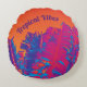 Feel the Tropical Vibes of this round psychedelic pop art round pillow with bright multicolored shades of orange, pink, blue and purple palm fronds. These pillows are fun, vibrant and colourful! Nature with a playful pop of vibrant colour. Personalise with a Name or your own text.