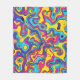 This artwork presents a vibrant and energetic composition of swirling, wavy lines in a kaleidoscope of colours. The design features bold, overlapping shapes in electric hues of yellow, blue, pink, purple, and orange, creating a dynamic and fluid movement throughout the piece. The undulating forms and intense colour palette evoke a sense of psychedelia, reminiscent of 1960s and 1970s art. The interplay of curves and contrasts makes the artwork visually stimulating and full of life.
