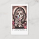 A unique tarot reader business card featuring a skeleton in a black hood. A unique style mashup of the tarot and your occupation. Social media on the back. Edgy and unique.