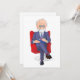 The meticulous detailing of the gentleman engrossed in note-taking adds a touch of refinement to your invitations, setting the tone for a distinguished affair. The rich red hue of the chair creates a bold and luxurious backdrop, making these invitations stand out in a crowd.