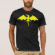Yellow pterodactyl flying with spread wings to be a superhero parody on a black tshirt. Forget Bats, if I could create a new super hero it would be Pterodactyl Man.