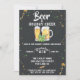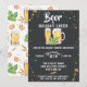 Painted beer glass, mug, hops, and wheat on chalkboard background, Holiday Party Invitation.