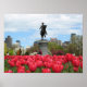 Tulips bloom in front of the George Washington statue in Boston Public Garden.