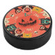 It's halloween party design celebrating the upcoming Halloween. This hand-drawn kawaii and fun illustration features halloween characters, vampire, pumpkin, Frankenstein, grim reaper, werewolf, skeleton, ghost and pumpkin.