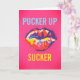 Forget the cheesy sonnets and the supermarket roses. If your relationship is built on banter and "lovely jubbly" vibes, this is the card for you. Featuring a vibrant, pop-art inspired lip graphic in high-voltage pinks and oranges, the front sets the mood with a cheeky "Pucker Up Sucker."