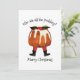 Fun, festive pudding humour Merry Christmas greeting card, showing a festive pud complete with legs. The text reads WHO ATE ALL THE PUDDING? at the top and MERRY CHRISTMAS at the bottom. This bottom text is CUSTOMIZABLE, so you can personalise with your own wording, eg. Happy Holidays, etc, and/or add your name. You can also personalise your festive message by replacing the text on the reverse.