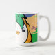 Pudgy Penguin #3950 Mug! Sip your favourite brew while escaping to a tropical paradise. Picture a pudgy penguin perched inside an orange pineapple by the beach, with a surfboard and serene waters in the background. Every sip, a slice of paradise.