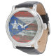 Puerto Rican Flag on Rough Wood Boards Effect Watch