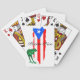 The Puerto Rico Coqui Island Frog Playing Cards feature the image of a Coqui frog and a Puerto Rican flag in the shape of an island.