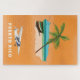 Puerto Rico illustrated map travel poster print featuring an old wooden fishing boat on a sandy beach.