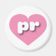 This magnet features a calm, cool pink heart containing the bold, rounded, white lower case letters pr, a playful version of the abbreviation for Puerto Rico, the enchanted island.