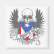 Puerto Rico flag on a backdrop of heralded wings. Worn and distressed look with a wicked looking skull. Puerto Rico Winges and Skull