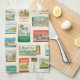 This tea towel features a repeating pattern of hand-painted, vintage-style matchbooks inspired by Puerto Vallarta’s neighborhoods, beaches, and everyday local favorites. Each illustrated matchbox captures a small moment of life in the city, from iconic spots like Zona Romántica, Conchas Chinas, and Playa Los Muertos to café culture, beach clubs, and colorful street food stands.