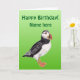 This birthday card is illustrated with an iconic puffin. A great card for those who like wildlife and birds. You can add the name of the recipient to make this card extra personal.