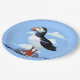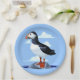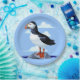 Cute Atlantic Puffin seabird, with his typical black and white plumage and brightly coloured beak, standing on a rock, in the Ocean. Original Vector Illustration Copyright BluedarkArt TheChameleonArt.