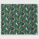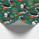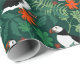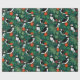 Colorful and fun Puffin pattern with lots of lush, green foliage and flowers. Vibrant green and orange colors.