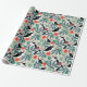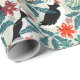 Colorful and fun Puffin pattern with lots of lush, green foliage on warm beige background. Vibrant green and orange colors.