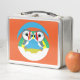 This is a standard metal lunchbox that appears to work just fine. We designed this box ourselves with an uploaded photo and custom text on the front and back. It looks absolutely beautiful except the front of the lunchbox is not centered like it shows in the photo. The print borders don't align with the inset flat part of the box where the preview photo online showed it perfectly centered in there. The back looks nice and centered though.